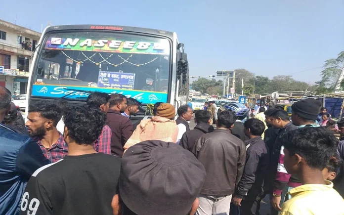 भय से भागने के क्रम में बुलेट चालक ने हजारीबाग से रांची आ रही नसीब नामक यात्री बस (जेएच 02 बीएफ1458) को सीधे ठोकर मार दी। इसके कारण बुलेट बस के नीचे घुस गयी।